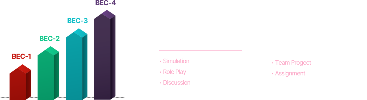 BEC 트랙은 BEC-1, BEC-2, BEC-3, BEC-4의 4단계 수준별 과정으로 구성됩니다.